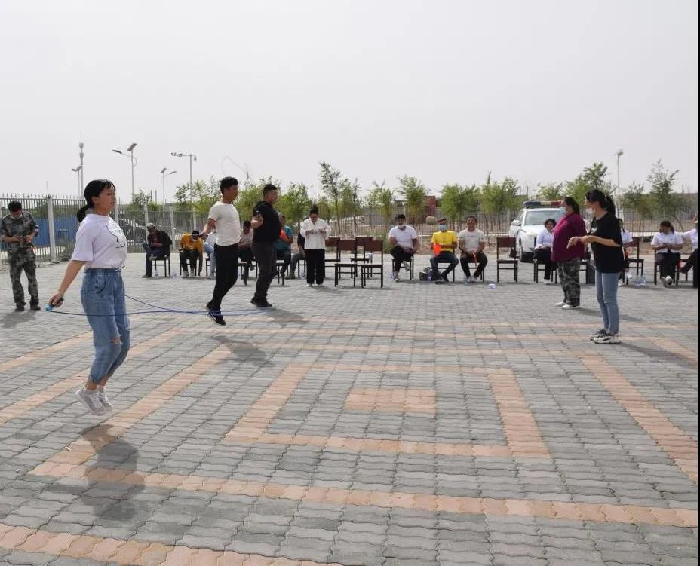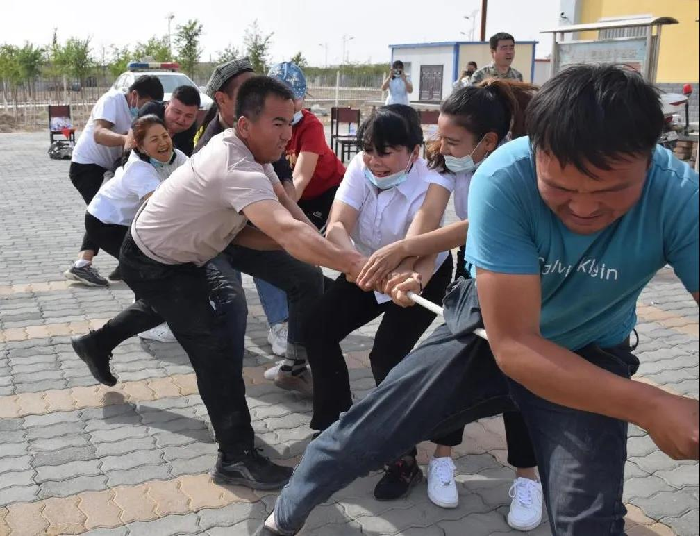 最后,四连青年和艾丁湖庄子村青年展开了趣味运动会,比赛项目包括男子女子跳绳比赛、拔河比赛、折返跑比赛等。人群中发出阵阵激烈的呐喊声、加油声,在一场场奔跑中、拼搏中,双方的情感碰撞在一起、融入在一起。