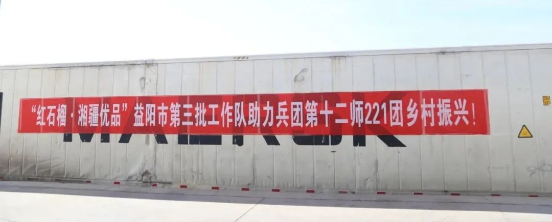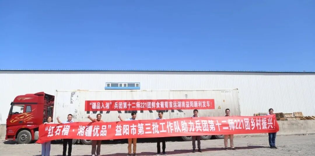 近日,在益阳市援疆干部协调安排下,悬挂着“‘红石榴·湘疆优品’益阳市第三批工作队助力兵团十二师221团乡村振兴”横幅的3辆货车,满载着无核白葡萄,从团场冷库驶出,将约70吨无核白葡萄直接运往湖南省益阳市。