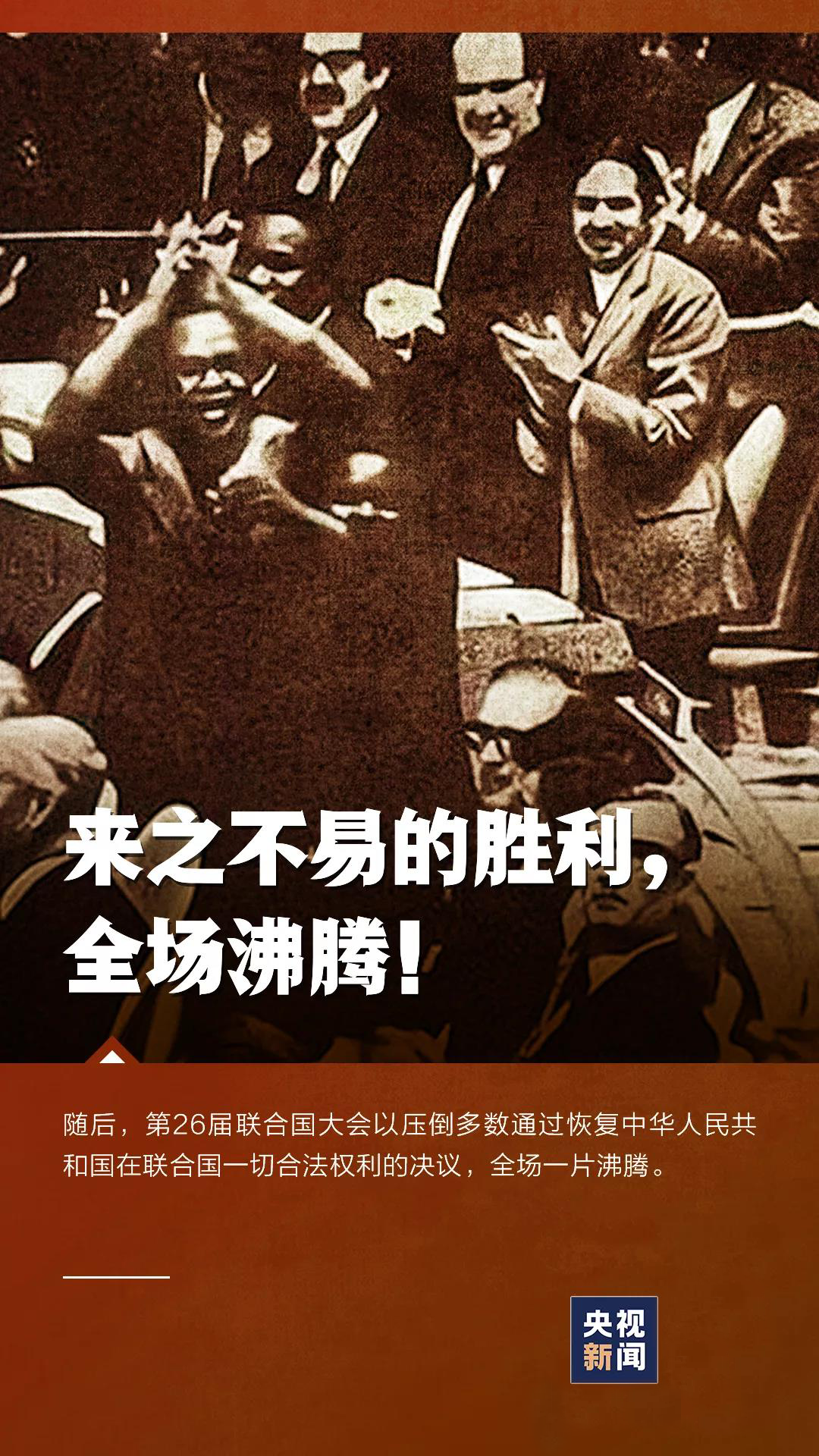 习近平指出,50年前的今天,第二十六届联合国大会以压倒性多数通过第2758号决议,决定恢复中华人民共和国在联合国的一切权利,承认中华人民共和国政府代表是中国在联合国的唯一合法代表。这是中国人民的胜利,也是世界各国人民的胜利!