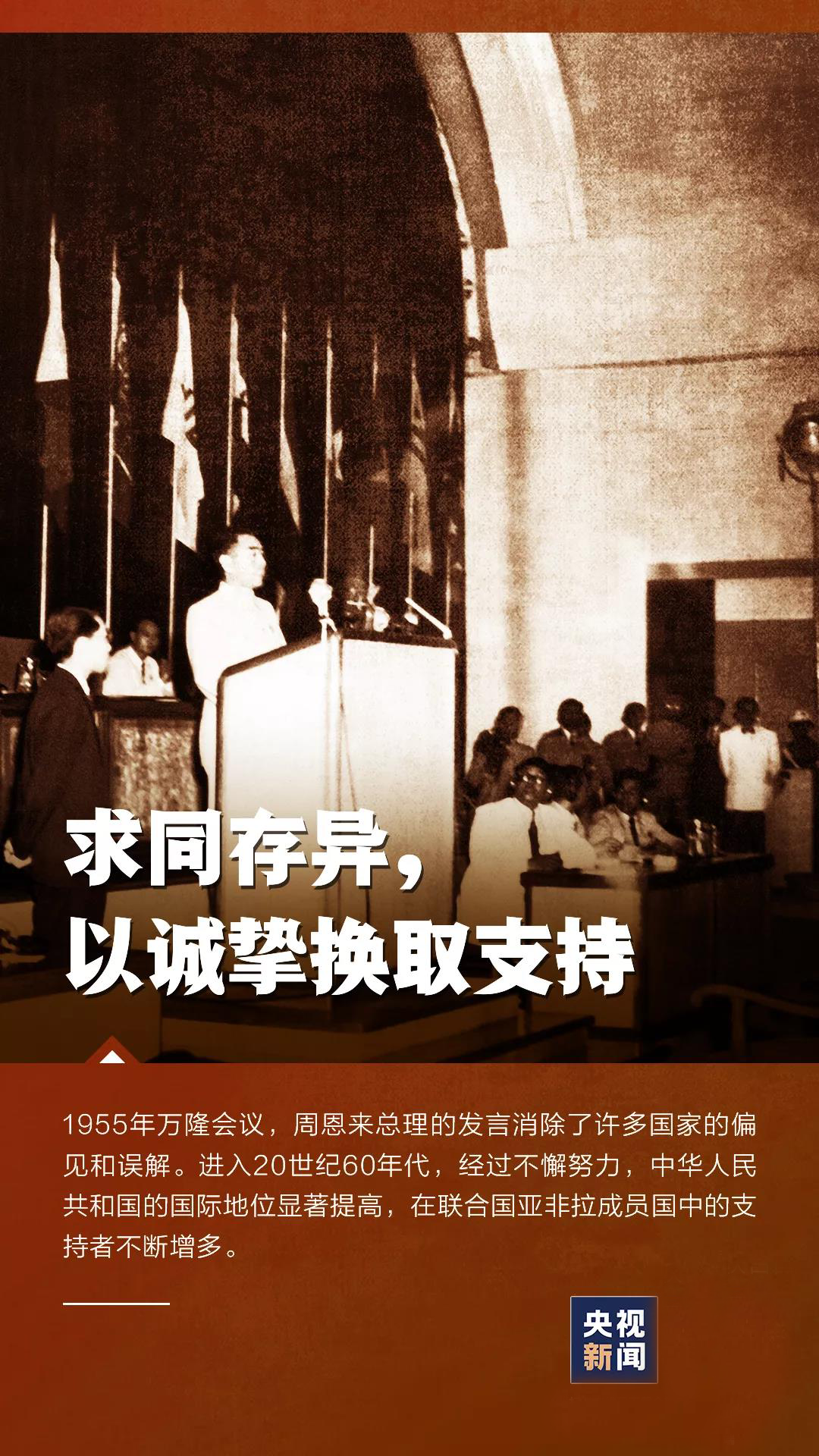 ——这50年,中国人民始终同世界各国人民团结合作,维护国际公平正义,为世界和平与发展作出了重大贡献。中国始终奉行独立自主的和平外交政策,主持公道,伸张正义,坚决反对霸权主义和强权政治。坚定支持广大发展中国家维护自身主权、安全、发展利益的正义斗争。中国人民致力于推动共同发展,从“坦赞铁路”到“一带一路”,向发展中国家提供力所能及的帮助,不断以中国发展为世界提供新机遇。在新冠肺炎疫情席卷全球的危难之际,中国积极同世界分享防控经验,向各国输送了大批抗疫物资、疫苗药品,深入开展病毒溯源科学合作,真诚为人类彻底战胜疫情而积极努力。