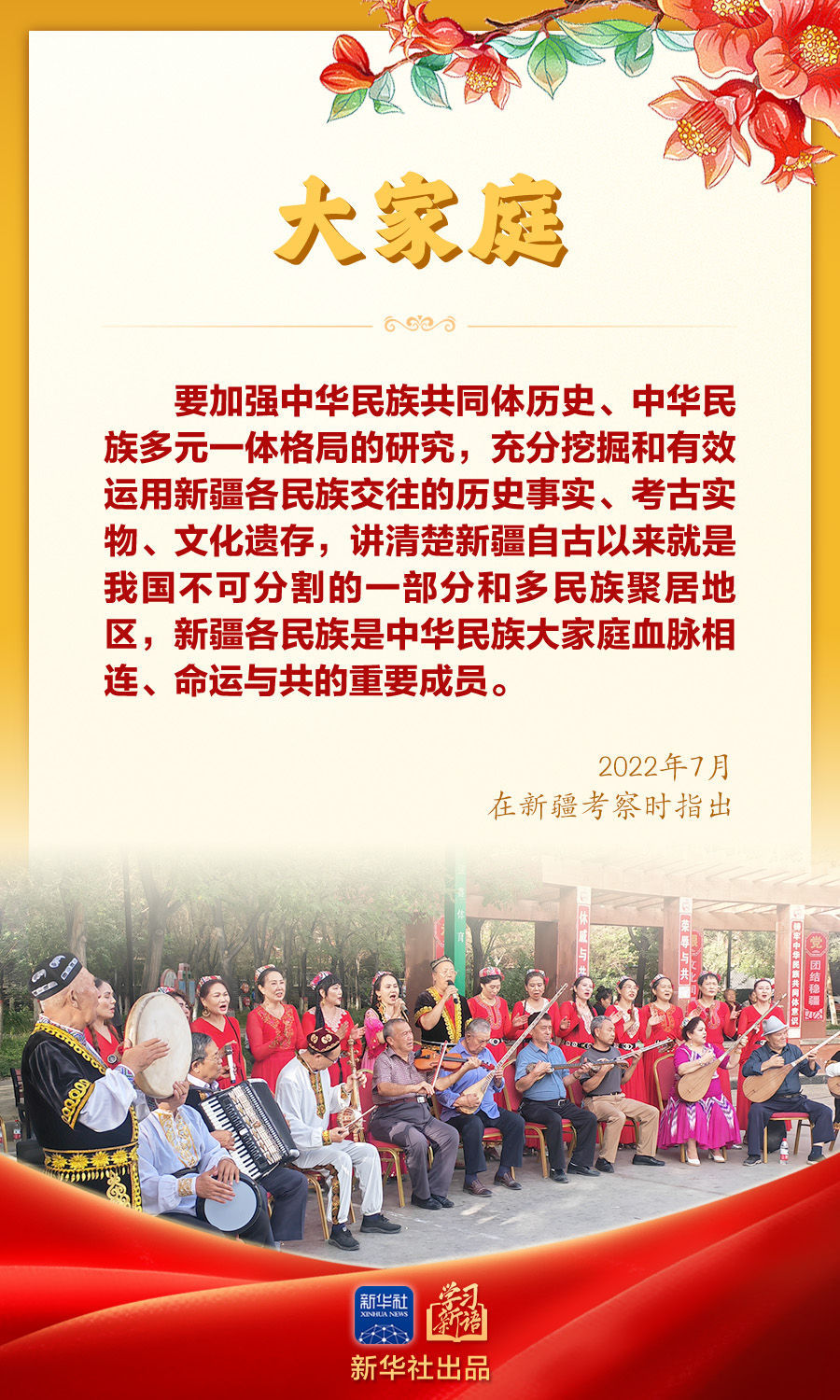 今年是新疆维吾尔自治区成立70周年。党的十八大以来,习近平总书记在不同场合对做好新疆工作、加强民族团结作出生动阐释,为铸牢中华民族共同体意识指引方向。