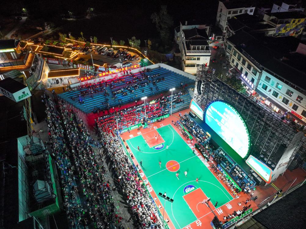 “好球!好球!”贵州省黔东南州台江县台盘村,村委会办公楼旁的“村BA”篮球场上,小伙子们挥汗练球,精彩的攻防引来场边观众阵阵叫好。