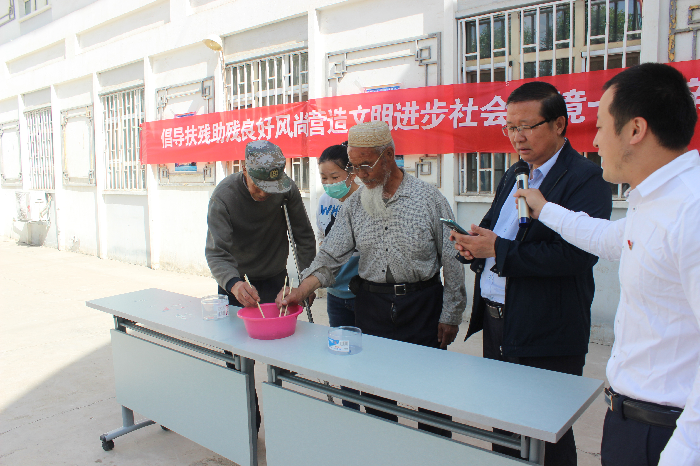 5月15日,二二二团唐坊社区在社区大院,开展“倡导扶残助残良好风尚 营造文明进步社会环境”助残日联谊活动。