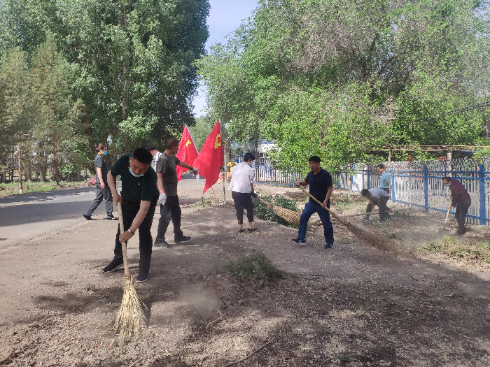 活动结束后,大家各持工具,来到二二二团三连冰湖社区,一同清理道路周边的枯木烂叶、杂草等垃圾,共同改善连队环境。