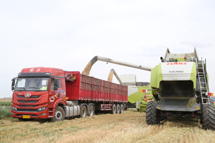 据悉,二二二团各连队目前已联系9台收割机、11辆运粮车辆,进行小麦收割、拉运,目前已收割小麦2500余亩,预计7月10日前全部小麦颗粒归仓。