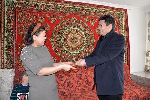 在困难户阿斯汉·艾江家里,黄治平对如何解决她的就业问题特别关心。在了解了她的就业意向之后,黄治平推荐了新疆农业大学科技学院春季招聘的岗位,并向阿斯汉·艾江送上了慰问金。