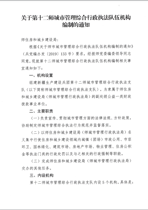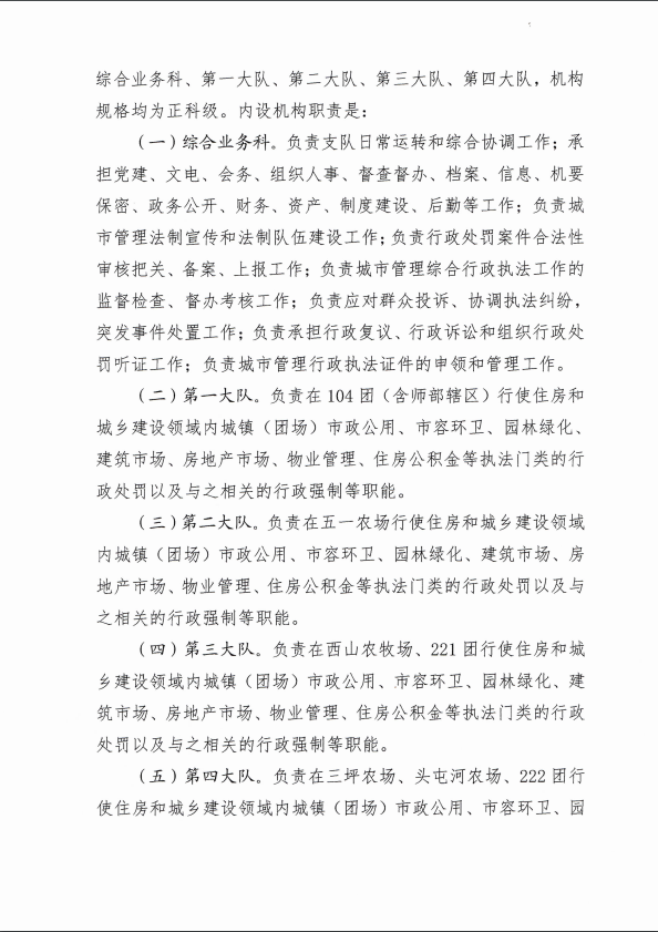 十二师城市管理综合行政执法支队三定方案