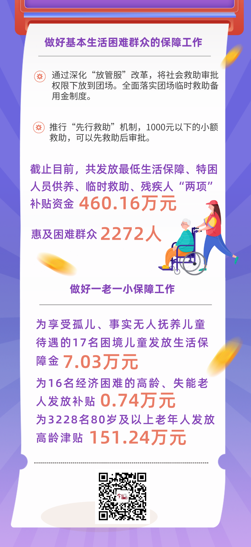 民生无小事,枝叶总关情。翻开十二师民政局半年“民生账单”,每一项数据,都见证着群众持续攀升的幸福指数。今年,师民政局扎实推进各项社会救助工作,发放各类津贴补贴619.17万元,充分发挥了民政“兜底线、保基本”职能。