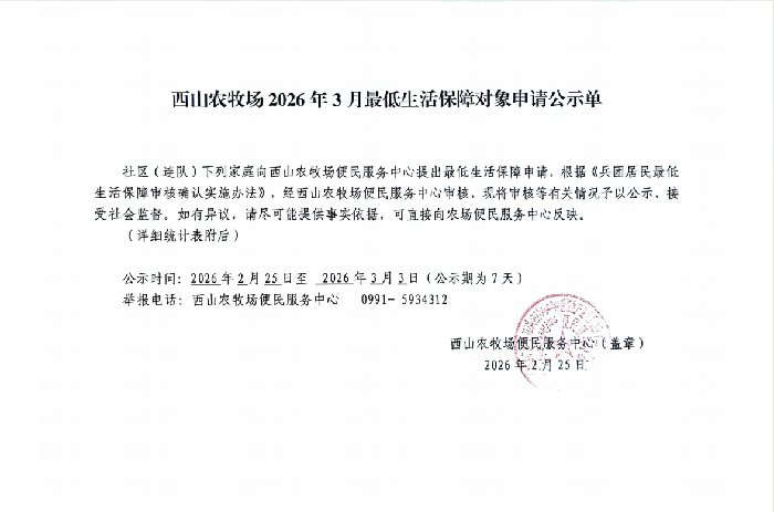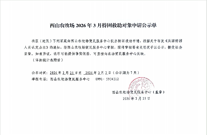 发布时间:2026-02-26 18:49 作者:西山农牧场-管理员 来源:新疆生产建设兵团第十二师 浏览次数: