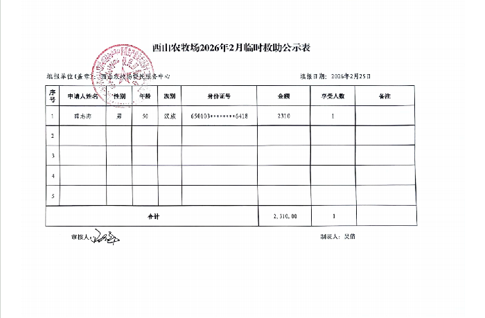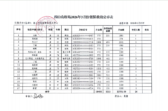 1、2026年2月临时救助公示2、2026年3月低保救助公示3、2026年3月特困救助公示